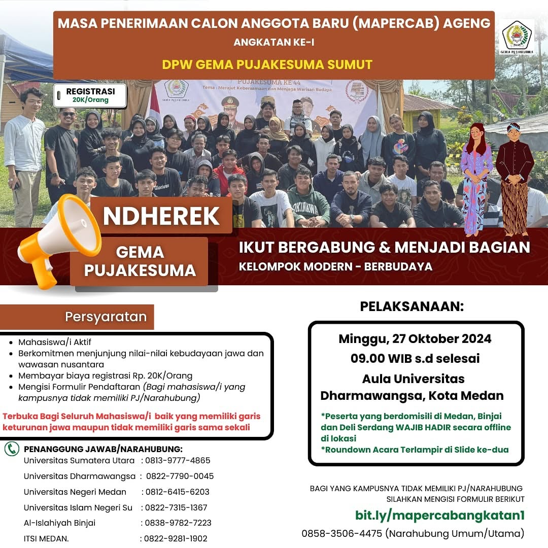 Generasi Mahasiswa Putra/i Jawa Kelahiran Sumatera (GEMA PUJAKESUMA) adalah organisasi Paguyuban Mahasiswa Independen yang bersifat Kebudayaan, Pendidikan dan Sosial serta tidak dapat terikat dengan faksi-faksi partai politik manapun.