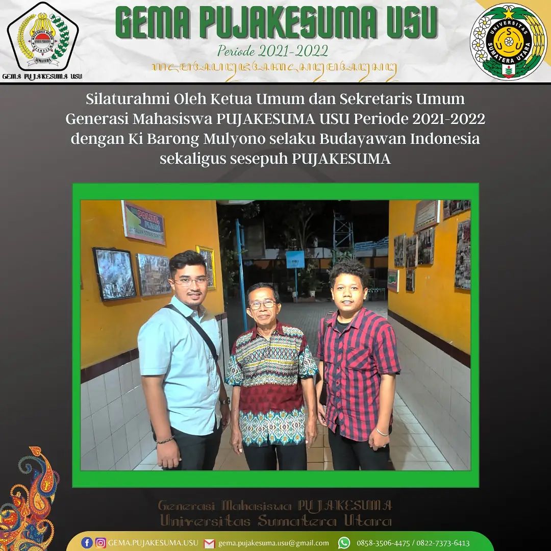 Dalam rangka menguatkan tali kekeluargaan antara Gema Pujakesuma dengan PKB Pujakesuma, Ketua umum (@an_arafahan ) dan Sekretaris Umum (@hamas.maulana1 ) Gema Pujakesuma USU bersilaturahmi dengan Pakde Ki Barong Mulyono.